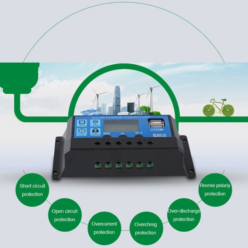 کنترلر شارژ خورشیدی 30 آمپر هوشمند یک رگولاتور پیشرفته جهت مدیریت شارژ پنل‌های خورشیدی برای باتری‌های 12 و 24 ولت است که با بهره‌گیری از سیستم کنترل صنعتی، نمایشگر LCD بزرگ و پارامترهای قابل تنظیم، کنترل دقیق شارژ و دشارژ را فراهم می‌کند. این کنترلر با پشتیبانی از انواع باتری (سیلد، لیتیوم و لیتیوم فسفات) و حفاظت‌های کامل الکتریکی، یک گزینه ایده‌آل برای سیستم‌های خورشیدی خانگی، صنعتی و کمپینگ است.