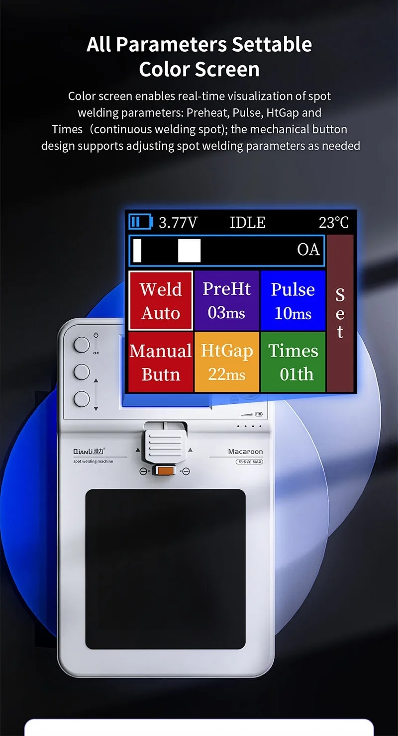 دستگاه جوش نقطهزن QianLi Macaron Max نسل سوم، یک جوش نقطهزن حرفهای، قابل حمل و باتریخور با نمایشگر رنگی برای جوش دقیق نوار نیکل روی باتریهای لیتیومی با توان خروجی بالا