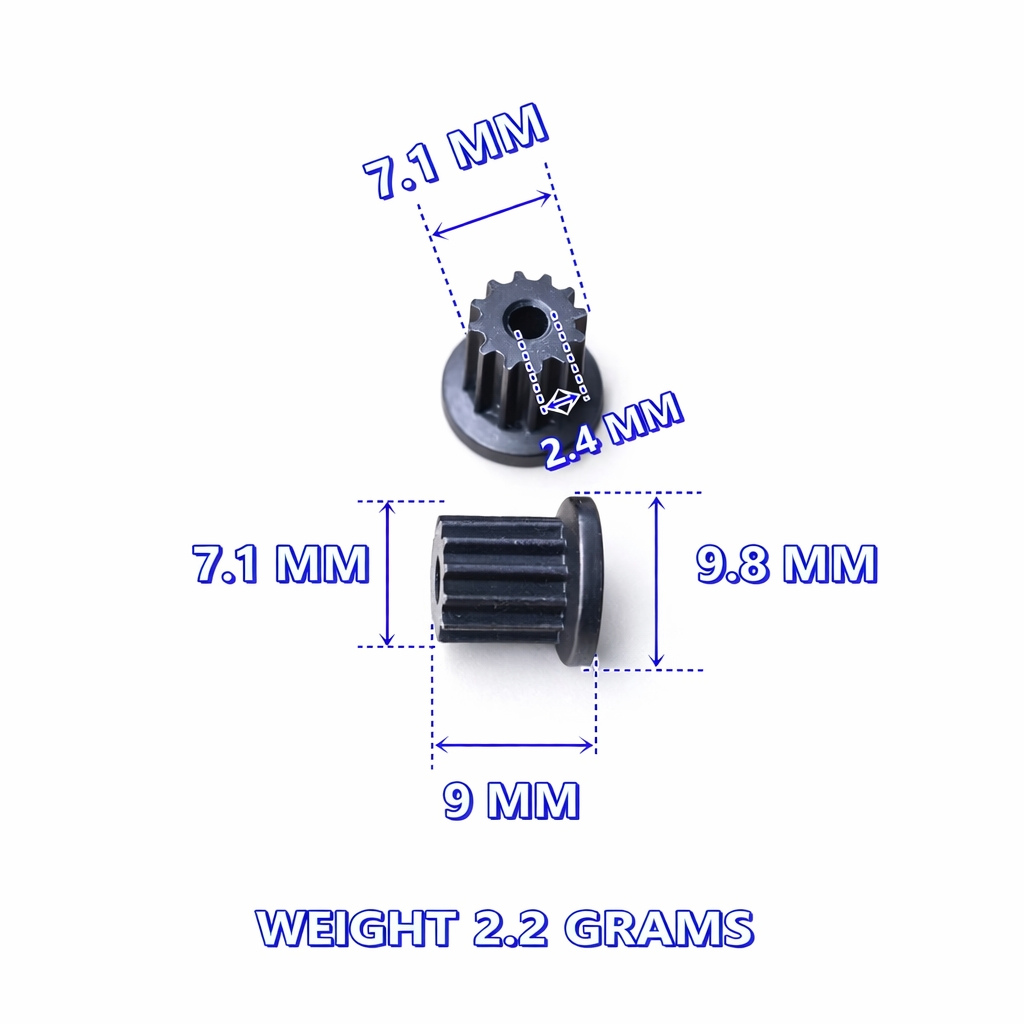 این مدل دارای قطر خارجی حدود 7.1 میلیمتر، ارتفاع 9 میلیمتر و قطر شفت 2.4 میلیمتر است که آن را برای نصب مستقیم روی شفت موتورهای 385 و برخی موتورهای 3 سری کاملاً مناسب میکند. استفاده از فلز با کیفیت، مقاومت پولی را در برابر سایش و فشار بالا افزایش داده و آن را برای استفاده مداوم در پروژههای DIY، رباتیک، مکانیزمهای حرکتی و سیستمهای انتقال نیرو ایدهآل میسازد.