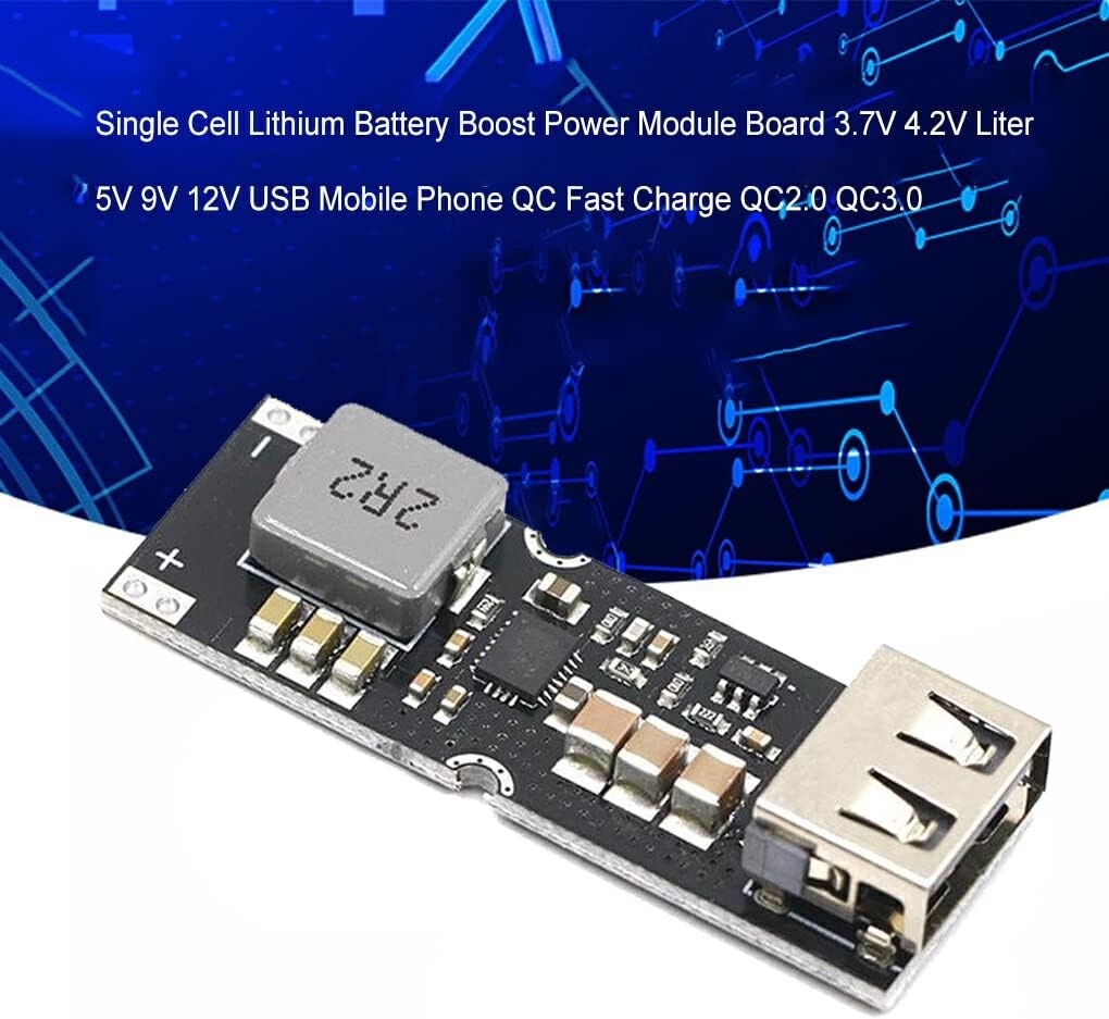 این ماژول افزاینده (Boost Converter) برای تبدیل مستقیم ولتاژ پایین باتریهای لیتیومی تکسل (با ولتاژ اسمی 3.7V و حداکثر 4.2V) به ولتاژهای استاندارد شارژ سریع مانند 5V، 9V و 12V طراحی شده است. عملکرد آن بهگونهای است که با استفاده از چیپ تقویتکننده TPS61088A، ولتاژ ورودی را بهطور پیوسته افزایش داده و در کنار شناسایی هوشمند ، بهصورت خودکار نوع پروتکل شارژ مورد نیاز دستگاه متصلشده را تشخیص میدهد.