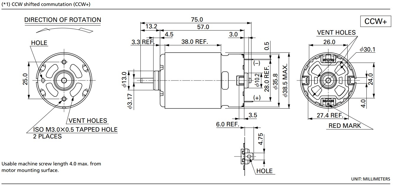 Motor length: about 57 mm