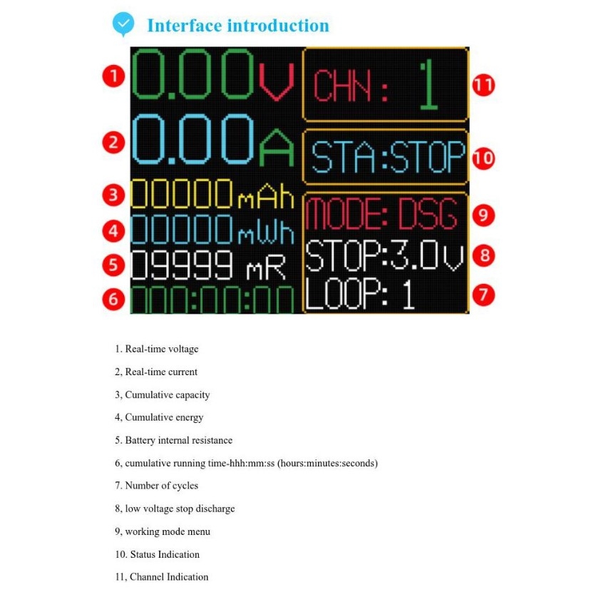 این ماژول قابلیت کار در سه حالت شارژ (CHG)، دشارژ (DSG) و خودکار (AUTO) را دارد و برای هر کانال، وضعیت عملکرد، ولتاژ پایان دشارژ و تعداد چرخه قابل تنظیم است. دقت بالا، رابط کاربری آسان و امکانات ایمنی مانند محافظ دمایی، این ماژول را به ابزاری مناسب برای تعمیرکاران، تولیدکنندگان باتری، و کاربران حرفهای در حوزه تست و آنالیز باتریهای قابل شارژ تبدیل کرده است.