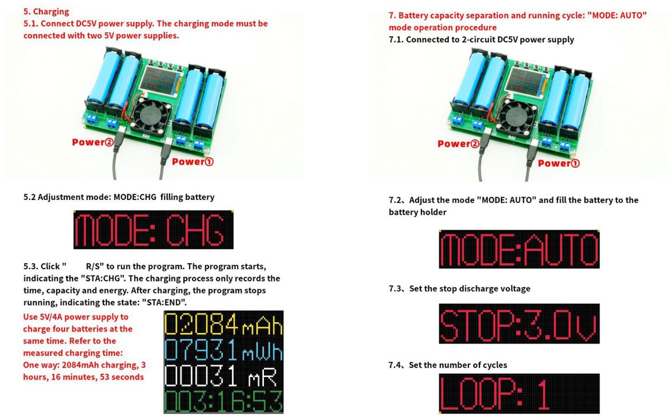 - این ماژول برای شارژ همزمان چهار باتری به دو منبع 5V با توان کافی (ترجیحاً 5V/4A) نیاز دارد.