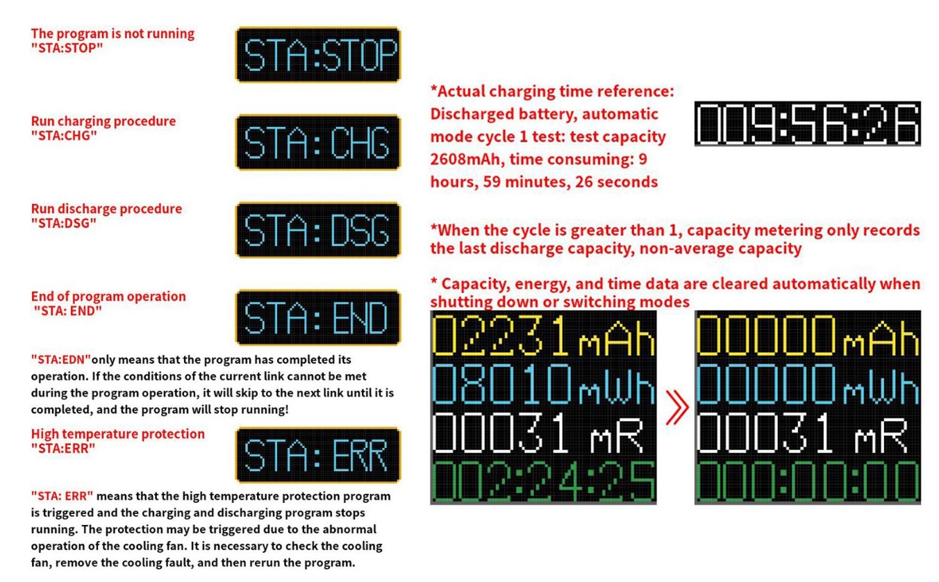 نکته: در حالت STA:END اگر یکی از مراحل شارژ/تخلیه نتواند انجام شود، به مرحله بعدی رفته و در نهایت پس از پایان، به حالت توقف میرسد.