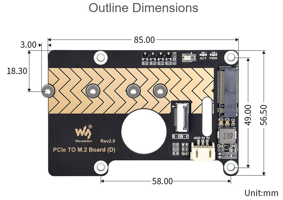 طراحی این ماژول بهصورت بهینه و صنعتی انجام شده است. اتصال از طریق کابل 16PIN PCIe FFC انجام میشود و در صورت نیاز میتوان از کانکتور 3PIN تغذیه کمکی برای تأمین جریان پایدار استفاده کرد. وجود دو LED وضعیت روی برد، نمایش فعالیت و وضعیت کاری SSD را ساده میکند. استفاده از پوشش Immersion Gold در ساخت PCB باعث افزایش کیفیت اتصال، کاهش اکسیداسیون و پایداری بیشتر در انتقال داده میشود. این برد گزینهای ایدهآل برای تبدیل Raspberry Pi 5 به یک مینیکامپیوتر با حافظه پرسرعت جهت سرورهای کوچک، پروژههای هوش مصنوعی، سیستمهای ذخیرهسازی شبکه (NAS) و کاربردهای صنعتی است.