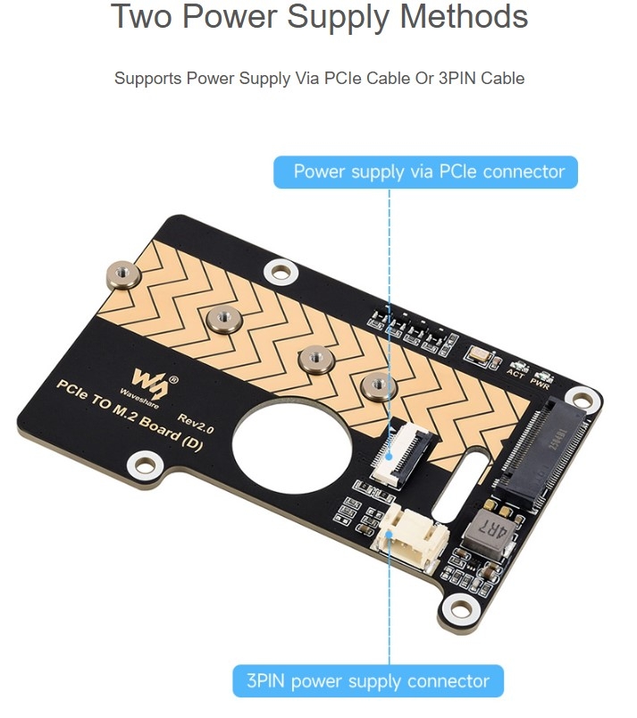 دو روش تأمین برق برای برد PCIe To M.2 Board (D) نمایش داده شده است.