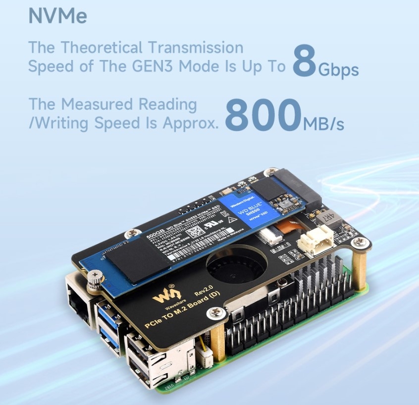 Maximum data transfer rate: Up to about 8Gbps (depending on Pi configuration and SSD type)