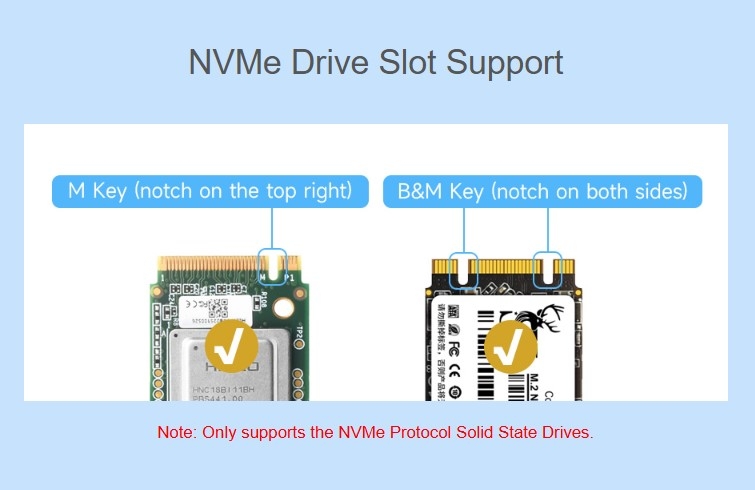 Supported SSD type: M.2 NVMe (NVMe protocol only - no SATA support)